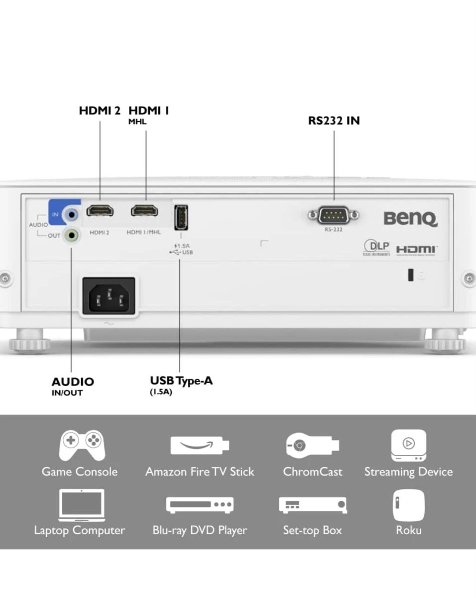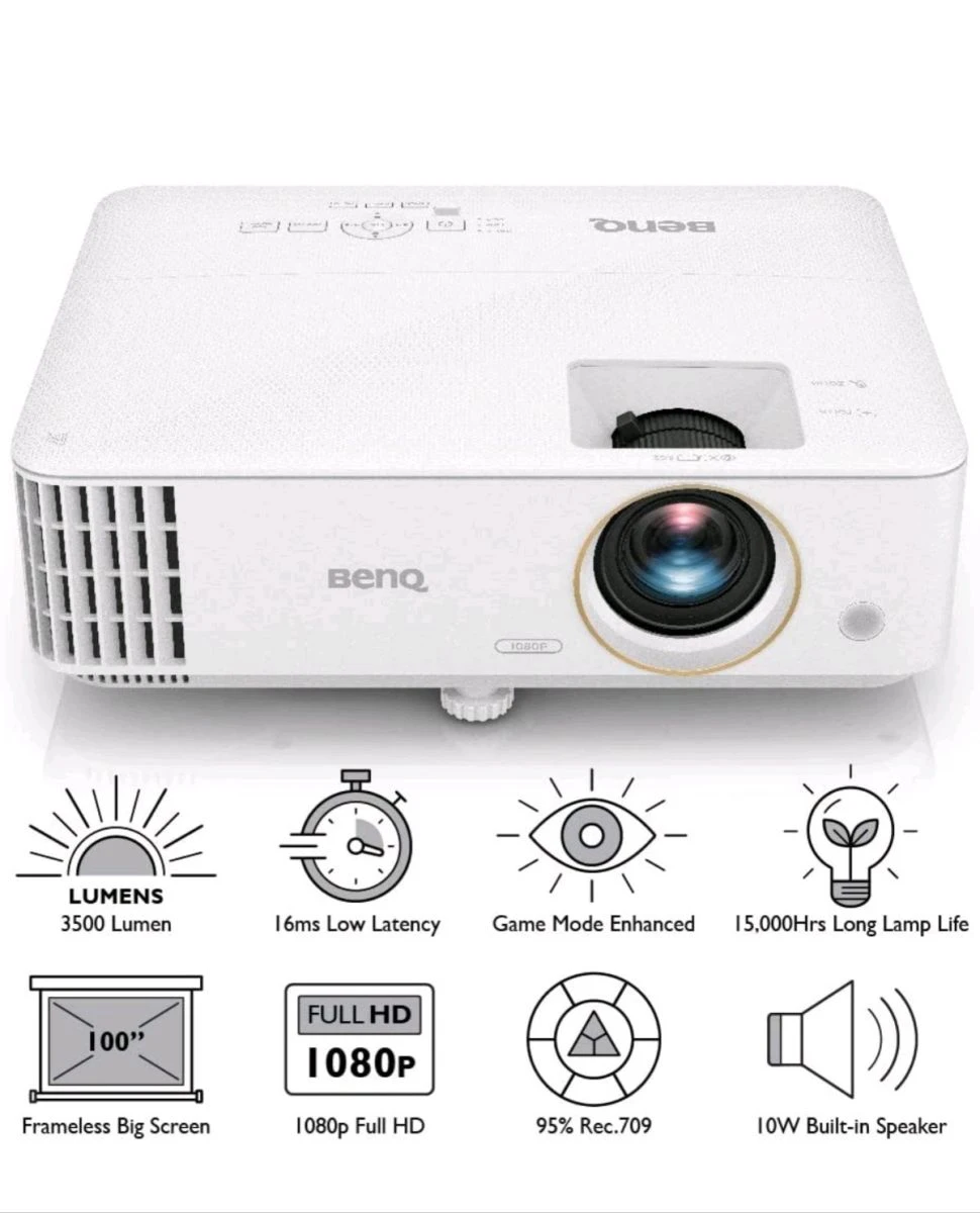 Full HD 1080P resolution: Full HD image quality with 1080 pixels, a brightness of 3,500 ANSI lumens and a contrast ratio of 10,000:1 for ultimate gaming in bright environment