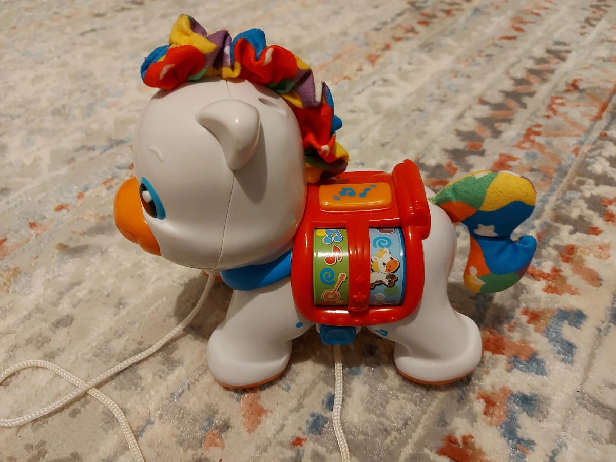Μικρό διαδραστικό πόνι για μωρά 12+ μηνών! Περιστρέφοντας τους κυλίνδρους, πιέζοντας το πλήκτρο στην πλάτη ή τραβώντας το πόνι, το παιδί ακούει ήχους και πολλές μελωδίες!