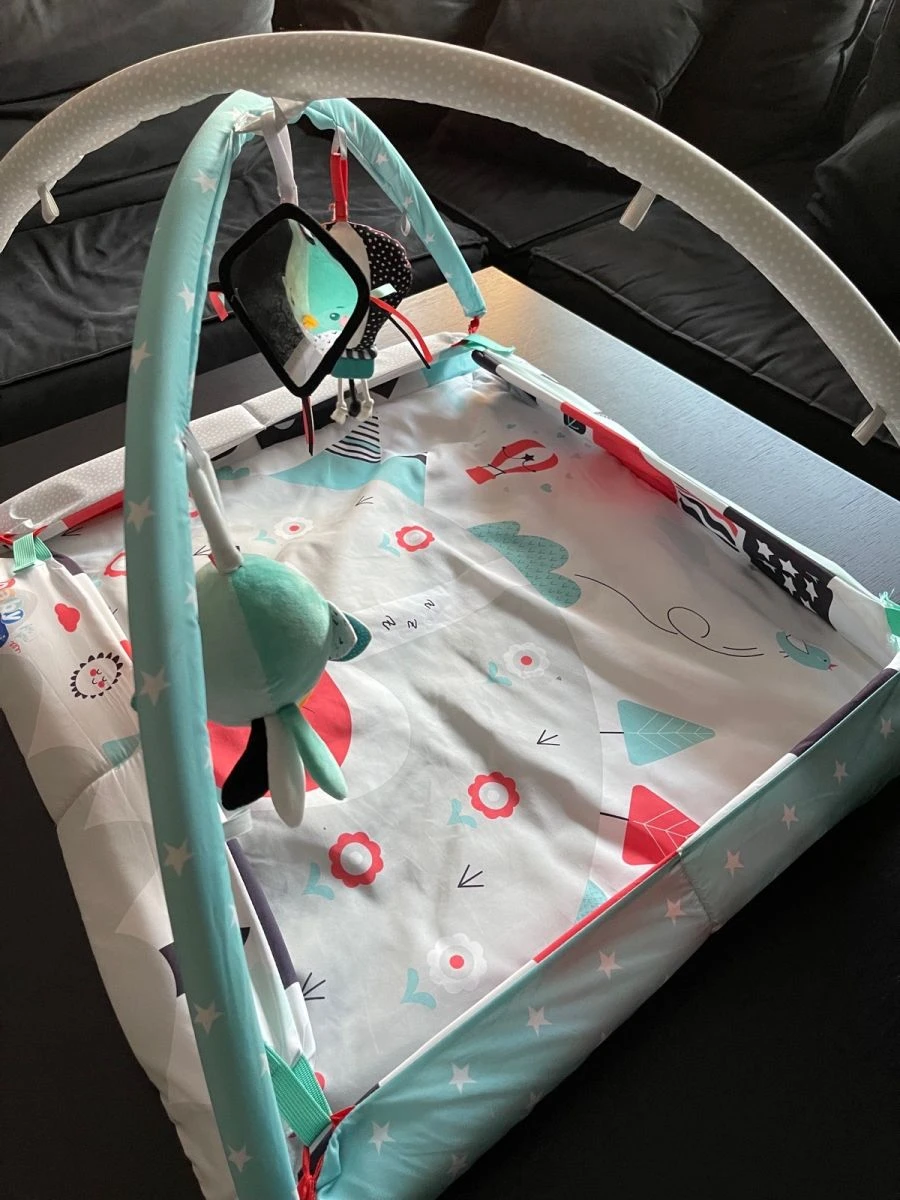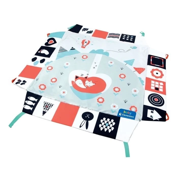 Ένα γυμναστήριο δραστηριοτήτων με πολλά αξεσουάρ για να εξερευνήσει το παιδί. Το μαύρο, το άσπρο και τα χρώματα με αντιθέσεις διεγείρουν την όραση του μωρού από τους πρώτους μήνες της ζωής του. Τα πλαϊνά τμήματα του γυμναστηρίου μπορούν να ανυψωθούν δημιουργώντας ένα άνετο και φιλικό περιβάλλον για ατελείωτο παιχνίδι.