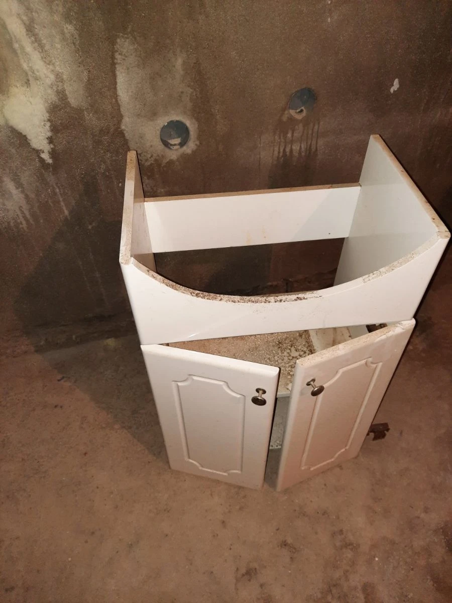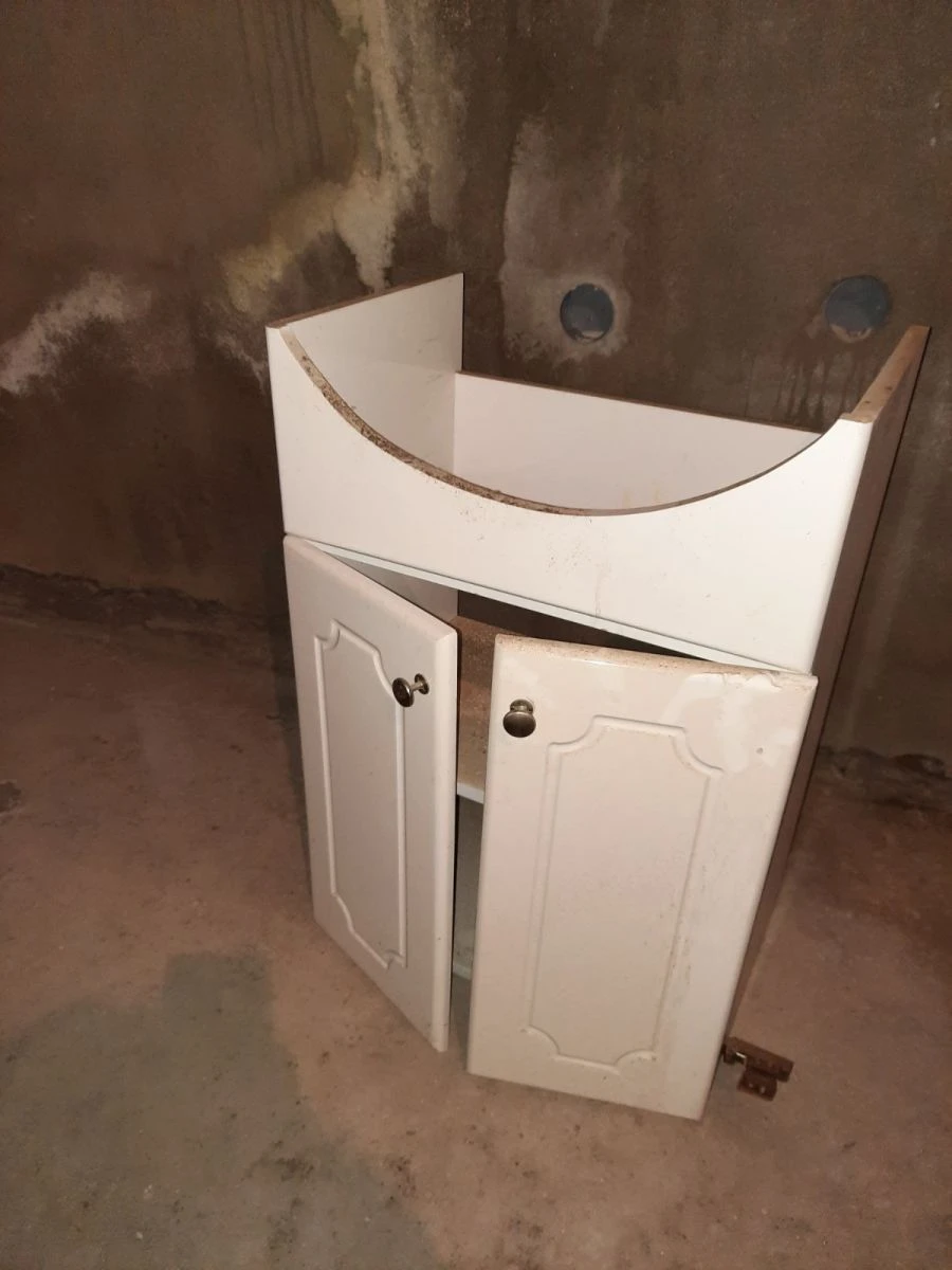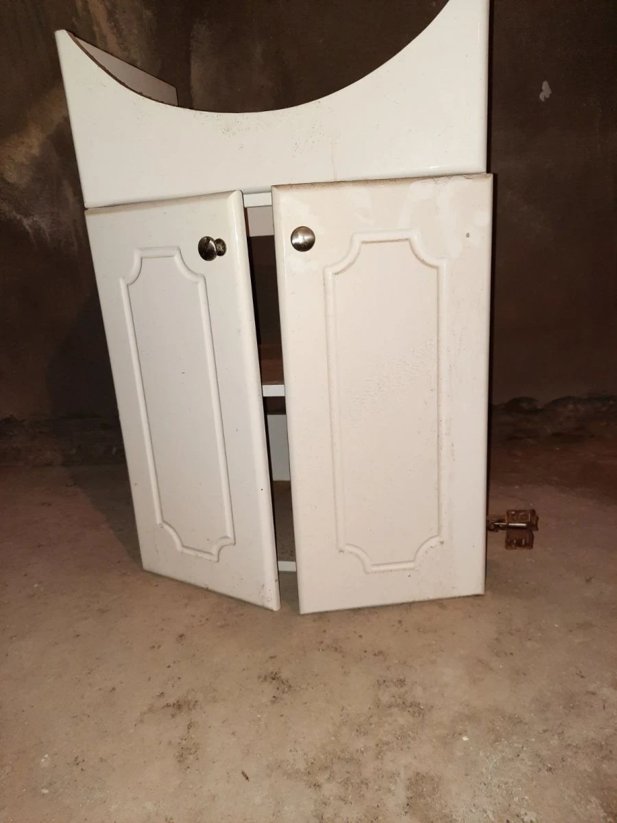 Έπιπλο μπάνιου. Χρώμα λευκό. Σε καλή κατάσταση εκτός τους μεντεσέδες.Στις φωτογραφίες απεικονίζεται σκονισμένο. Ύψος 0,67. Βάθος 0,30. Πλάτος 0,45. Τιμή συζητήσιμη.(Περιοχή Αγίας Αικατερίνης στο Ηράκλειο Κρήτης)