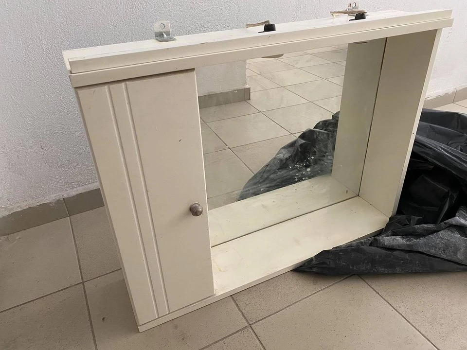 4) Ντουλαπάκι μπάνιου (λουστραρισμένο) με καθρέπτη και υποδοχή για λάμπες.