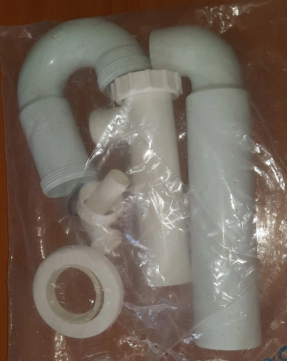 Μηχανισμός φλωτέρ με ορειχάλκινο σπείρωμα και φούσκα για καζανάκι και πλαστικό σιφώνι αποχέτευσης νεροχύτη.
