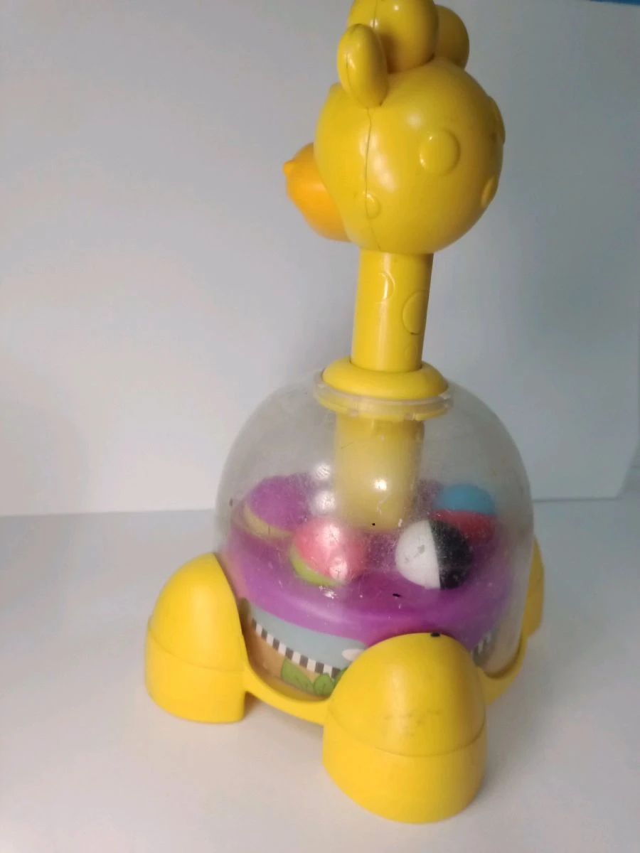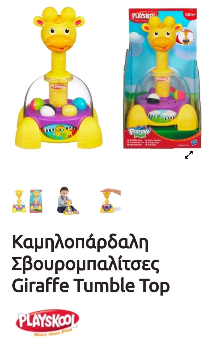 Μπάλες που στριφογυρίζουν για ατελείωτες ώρες σε παιχνίδι. Πιέστε το κεφάλι της Καμιλοπαρδαλίτσας για να «σβουρίξετε» τη χαρά και το γέλιο των παιδιών σας!