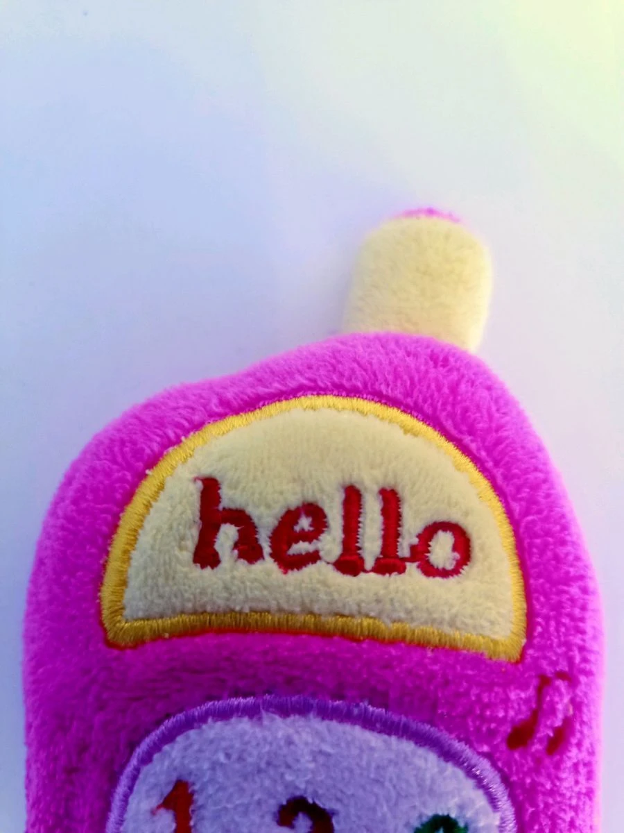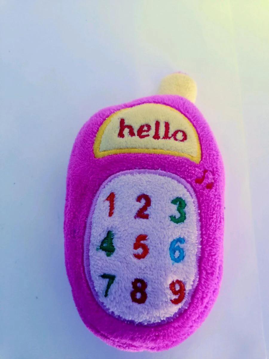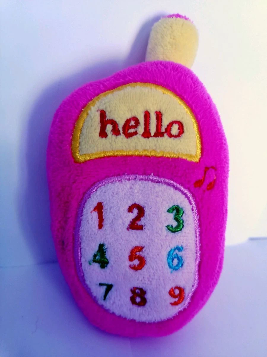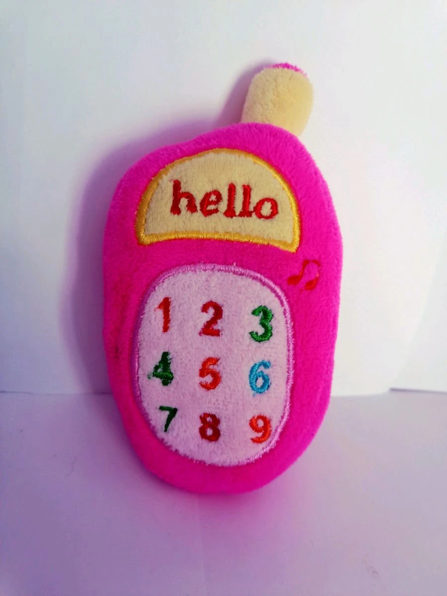 Κουδουνίστρα λούτρινη κινητό ροζ με ήχο. Ηλεκτρονική κουδουνίστρα που παίζει μουσική όταν πατάς τα πλήκτρα του κινητού τηλεφώνου! Βοηθά στην ανάπτυξη των αισθήσεων, ο ήχος και τα χρωματιστά σχέδια απασχολούν ευχάριστα το παιδί. Πλένεται μόνο επιφανειακά. *ΠΡΟΣΟΧΗ! Απαιτείται επίβλεψη από ενήλικα.