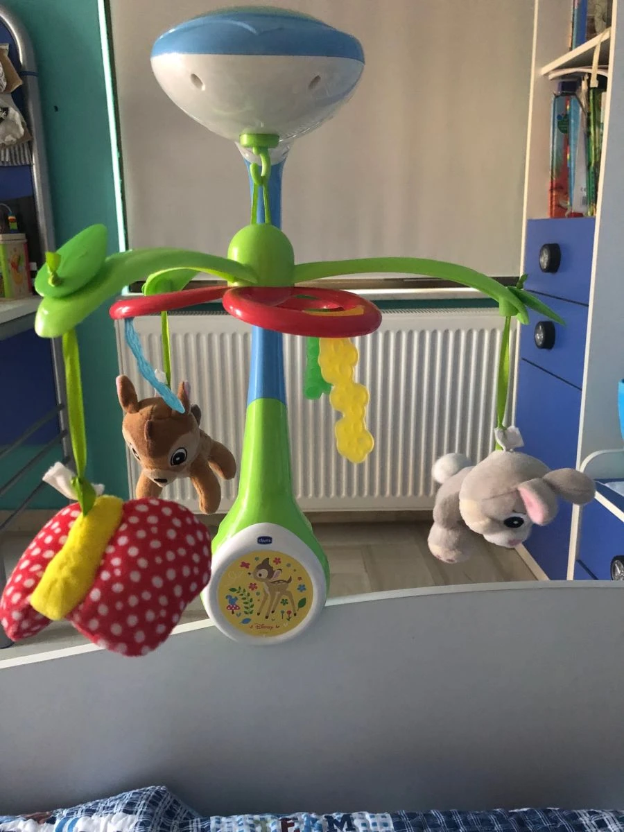 Κρεμαστό παιχνίδι κούνιας chicco μαγικό δάσος με χαλαρωτικές μελωδίες, φωτεινό ζωάκι που αλλάζει χρώματα και τρία ζωάκια που περιστρέφονται πάνω από την κοϋνια για έναν χαλαρωτικό ύπνο. Πλήρως λειτουργικό.