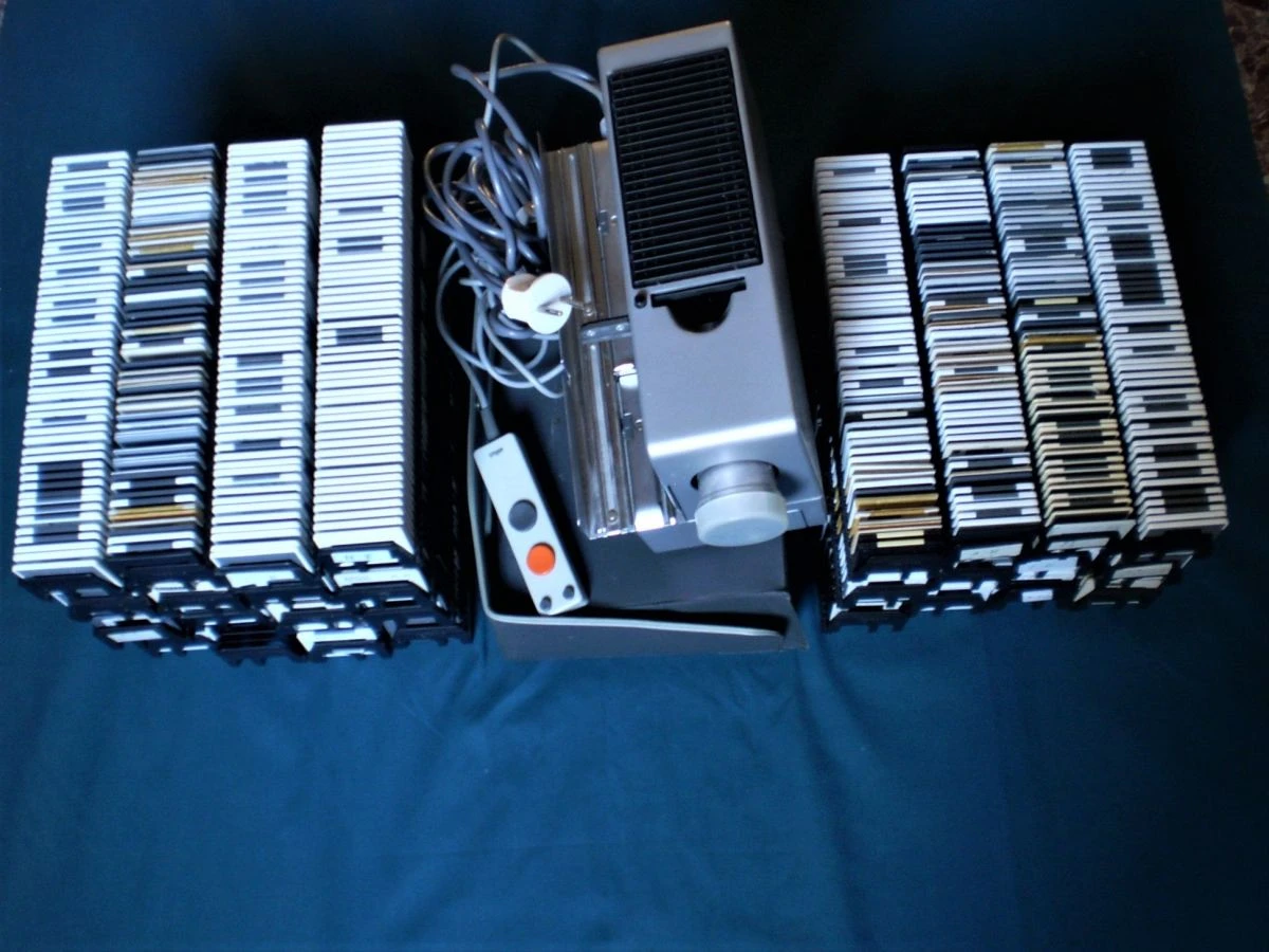 Γαίτη, Ακριθάκη, Φασιανό, Τετση, Τακις, Χρύσα ,Μαλέας Τσόκλη, Μυταρά, Κοντόπουλο, Καραβία, Σαββίδη, Βικάτο, Ρόρη κ.ά. και από τους ξένους καλλιτέχνες τους Σαγκάλ,, Σεζάν, Πικάσο, Γκόγια, Λεονάρντο ντα Βίντσι, Μούγκ, Ντεραίν, Μαξ Μπέκμαν, κ.ά. Η κατάστασή τους είναι αρίστη και δεν είναι αυστηρά ταξινομημένα κατά καλλιτέχνη. Με τη συλλογή των slides πωλείται και ο εικονιζόμενος προτζέκτορας ο οποίος είναι λειτουργικός. Παρακαλώ κοιτάξτε προσεκτικά τις φωτογραφίες και πριν αγοράσετε επικοινωνήστε μαζί μου για τυχόν ερωτήσεις. Τιμή συζητήσιμη.