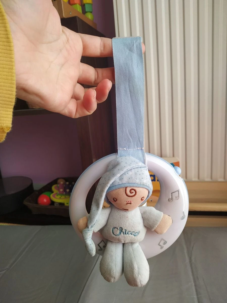 Παίζει χαλαρωτική μουσική και έχει ένα ηπιο φως. Μπορεί να κρεμαστεί σε κούνια ή καρότσι. Λειτουργεί κανονικά. Συνάντηση ή αποστολή
