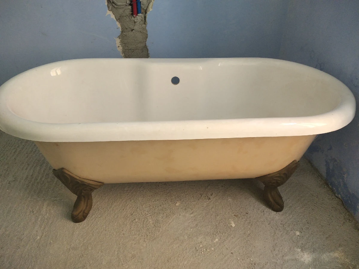 Ακρυλική μπανιέρα με μπρούντζινα πόδια, αχρησιμοποιητη, 1,70Χ0,80