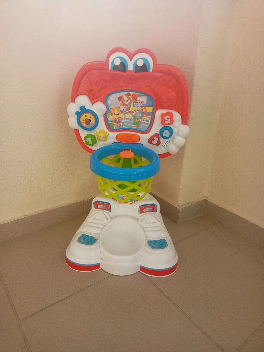 Εκπαιδευτικός μπασκετάκιας που συνδυάζει διασκέδαση, άθληση και μάθηση σε ένα παιχνίδι. Το παιδί μαθαίνει τους πρώτους αριθμούς και τα χρώματα ενώ ταυτόχρονα μετρά τα καλάθια που βάζει. Επίσης διαθέτει πολλά τραγουδάκια και ποιηματάκια που το ψυχαγωγούν και το μαθαίνουν νέες λέξεις. Κατάλληλο για μωρά ηλικίας 18+ μηνών.
