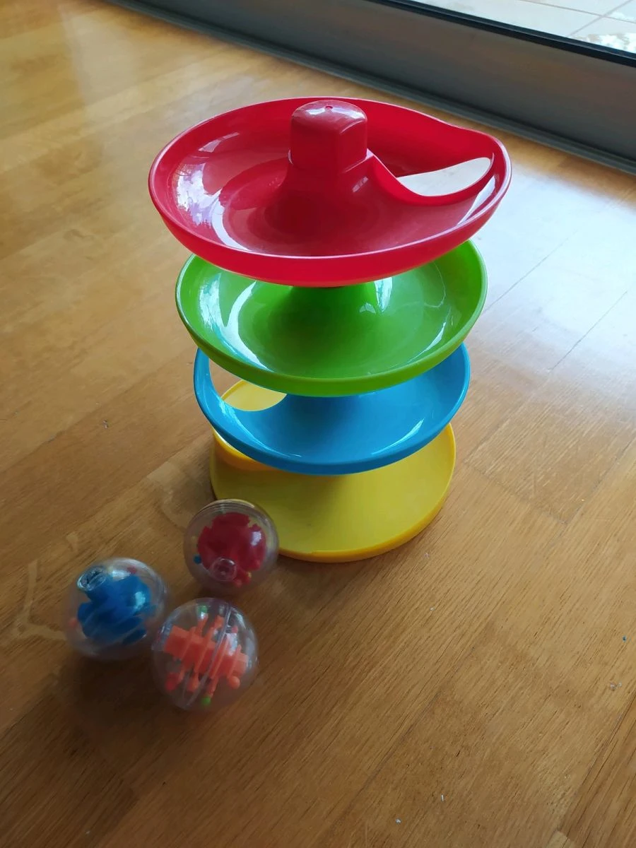 Ενδιαφέρον βρεφικό παιχνιδι με 3 μπαλιτσες-κουδουνιστρες. Αρχική τιμή από Μουστάκα 9,99. Άριστη κατάσταση