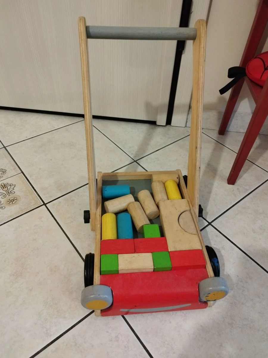 Vendora Παιδικό καρότσι ξύλινο με τουβλακια ξυλινα