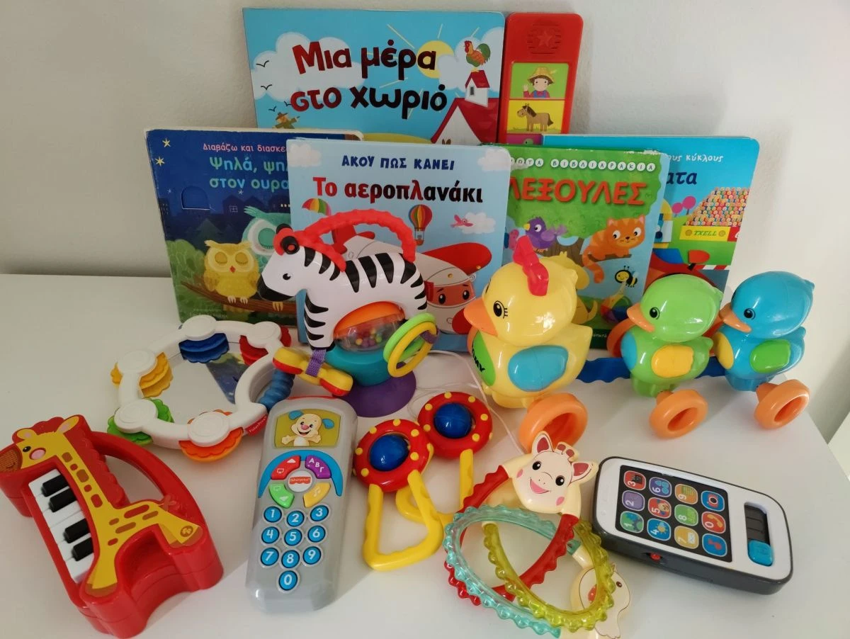 Πακέτο με βρεφικά παιχνίδια και παραμύθια. Κάποια χρειάζονται μπαταρίες