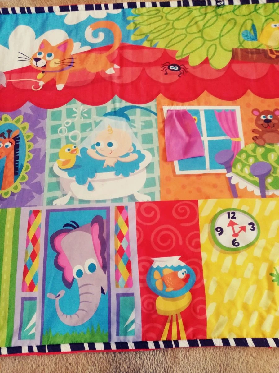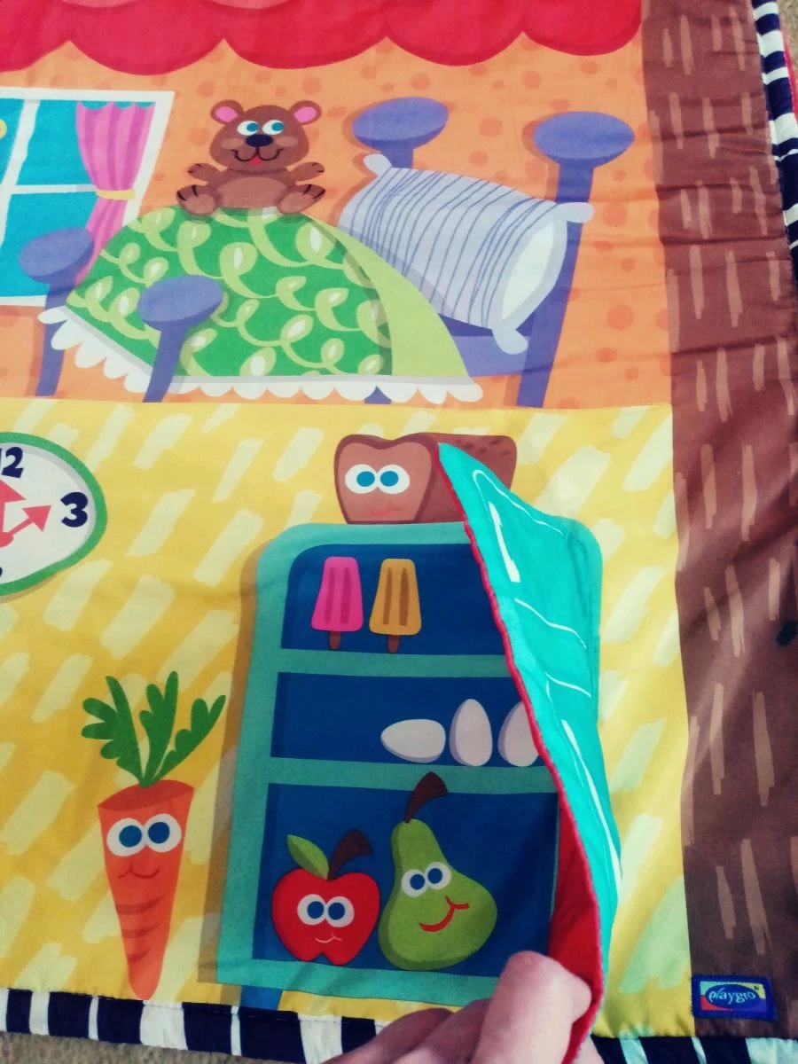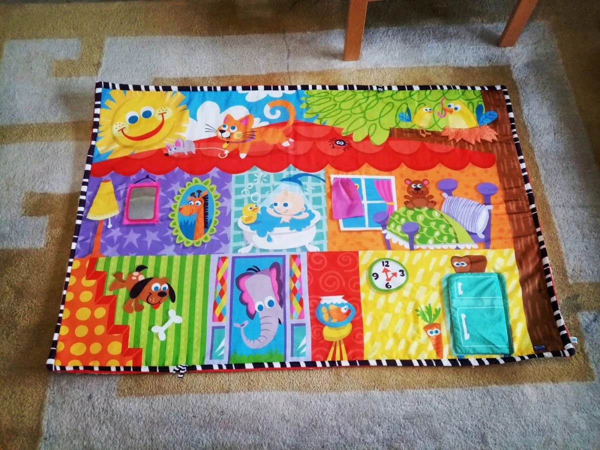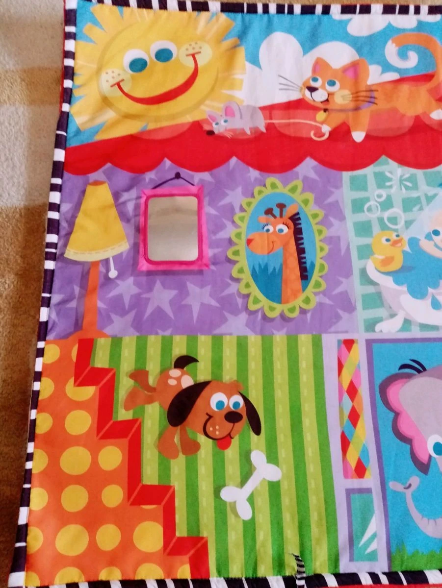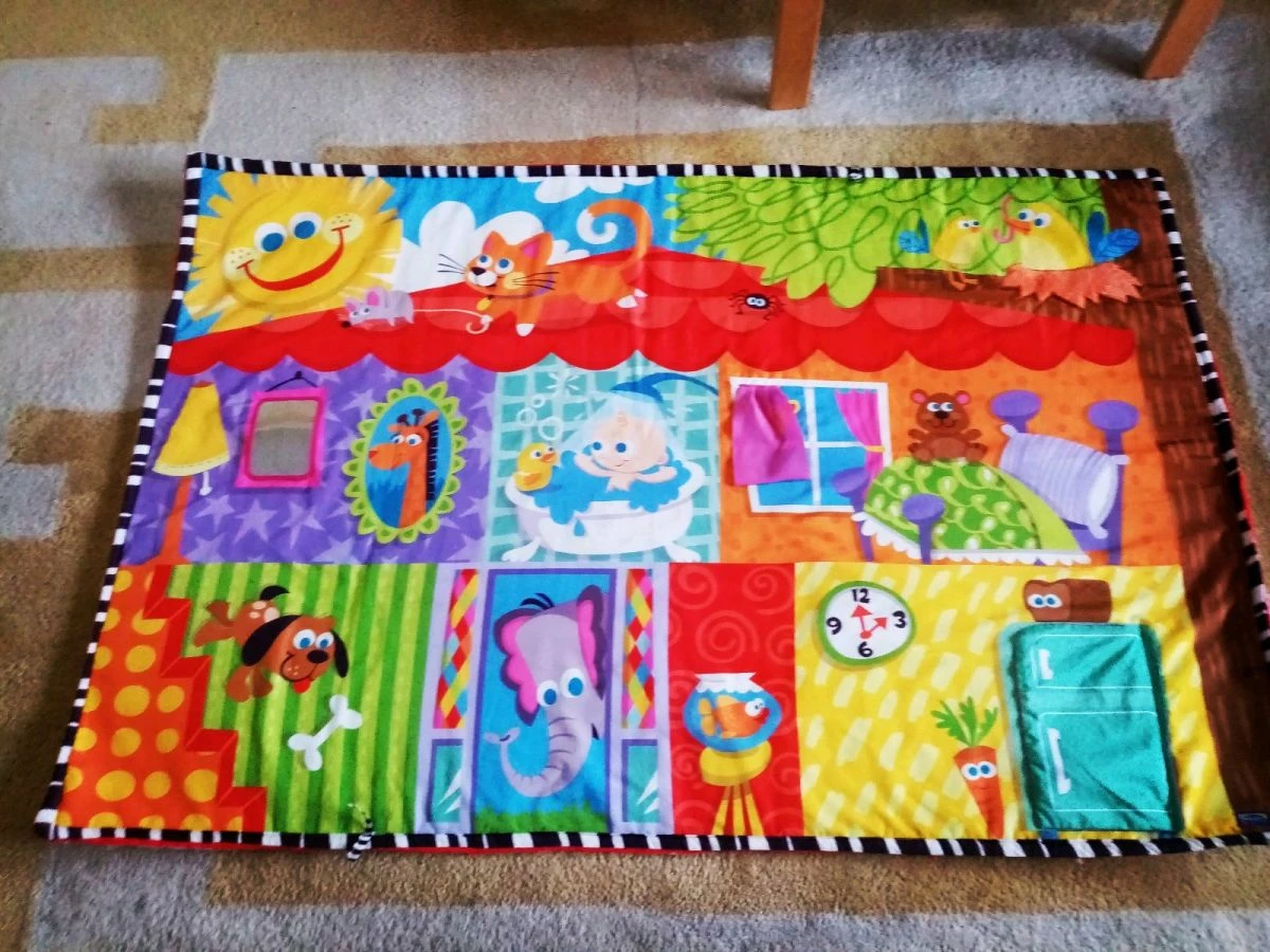 Μεγαλο χαλακι δραστηριοτητων της playgro. Διαστασεις 1,5 επι 1 μετρο. Στο κατω μερος υπηρχε μαλακο υφασμα που λογω φθορας (σκισιμο στην ακρη) το εβγαλα.(Δειτε τελευταιες φωτογραφιες) Ειναι πλεον με υαλοβαμβακα. Μπορει ευκολα με ραφτει ενα οποιοδηποτε υφασμα ή να μεινει και ετσι. Εχει πλυθει με απολυμαντικο απορρυπαντικο αν και ηταν καθαρο. Δεν υπαρχει κανενα σημαδι/λεκες. Ειχε αγοραστει απο prenatal 40 ευρω.