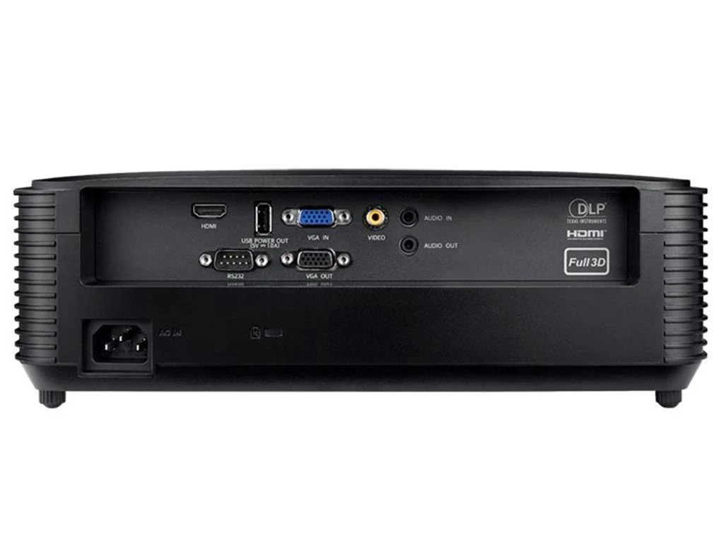 Specifications Display/image Display technology DLP Resolution XGA (1024×768) Brightness 3,800 lumens Contrast ratio 25,000:1 Native aspect ratio 4:3 Aspect ratio – compatible 16:9 Keystone correction – vertical +/-40° Horizontal scan rate 15.38 ~ 91.15Khz Vertical scan rate 50 ~ 85(120 for 3D)Hz Uniformity 75% Screen size 0.71m ~ 7.73m (27.78″ ~ 304.4″) diagonal Lamp info Light source type Lamp Lamp watts 203 Lamp life hours (up to) 6000 (Bright), 12000 (Dynamic), 10000 (Eco), 15000 (Eco+) Optical Throw ratio 1.94:1 ~ 2.16:1 Projection distance (m) 1m – 12m Zoom 1.1 Zoom type Manual Focal length (mm) 21.85 ~ 24 Native offset 115% Connectivity Connections Inputs 1 x HDMI 1.4a 3D support, 1 x VGA (YPbPr/RGB), 1 x Composite video, 1 x Audio 3.5mm Outputs 1 x VGA, 1 x Audio 3.5mm, 1 x USB-A power 1A Control 1 x RS232 General Noise level (typical) 27dB Noise level (max) 29dB PC compatibility FHD, UXGA, SXGA, WXGA, HD, XGA, SVGA, VGA, Mac 2D compatibility NTSC M/J, 3.58MHz, 4.43MHz PAL B/D/G/H/I/M/N, 4,43MHz SECAM B/D/G/K/K1/L, 4.25/4.4MHz 480i/p, 576i/p, 720p(50/60Hz), 1080i(50/60Hz), 1080p(50/60Hz) 3D compatibility Side-by-Side:1080i50 / 60, 720p50 / 60 Frame-pack: 1080p24, 720p50 / 60 Over-Under: 1080p24, 720p50 / 60 3D Full 3D Security Security bar, Kensington Lock, Password protected interface OSD / display languages 25 languages: Arabic, Czech, Danish, Dutch, English, Farsi, Finnish, French, German, Greek, Hungarian, Indonesian, Italian, Japanese, Norwegian, Polish, Portuguese, Romanian, Russian, Chinese (simplified), Spanish, Swedish, Chinese (traditional), Turkish, Vietnamese Operating conditions 5°C ~ 40°C, Max. Humidity 85%, Max. Altitude 3000m Remote control Card style Speaker count 1 Watts per speaker 10W In the box AC power cord Remote control Battery Basic user manual Optional wireless models HDCast Pro, QuickCast Bundle, QuickCast starter kit, WHD200 Power Power supply 100 ~ 240V, 50 ~ 60Hz Power consumption (standby) 0.5W Power consumption (min) 187W Power consumption (max) 225W Weight and dimensions Dimensions (W x D x H) mm 316 x 244 x 108 Gross weight 3.58 kg Net weight 3.04 kg