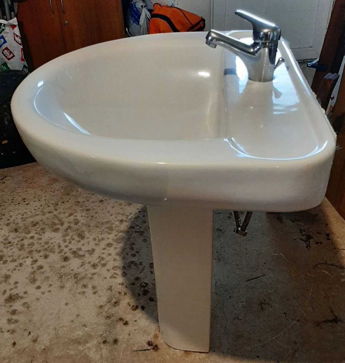 Διαστάσεις νιπτήρα 0,70 × 0,57 × συνολικό μαζί με την κολόνα 0,85 (Μ × Π × Υ)