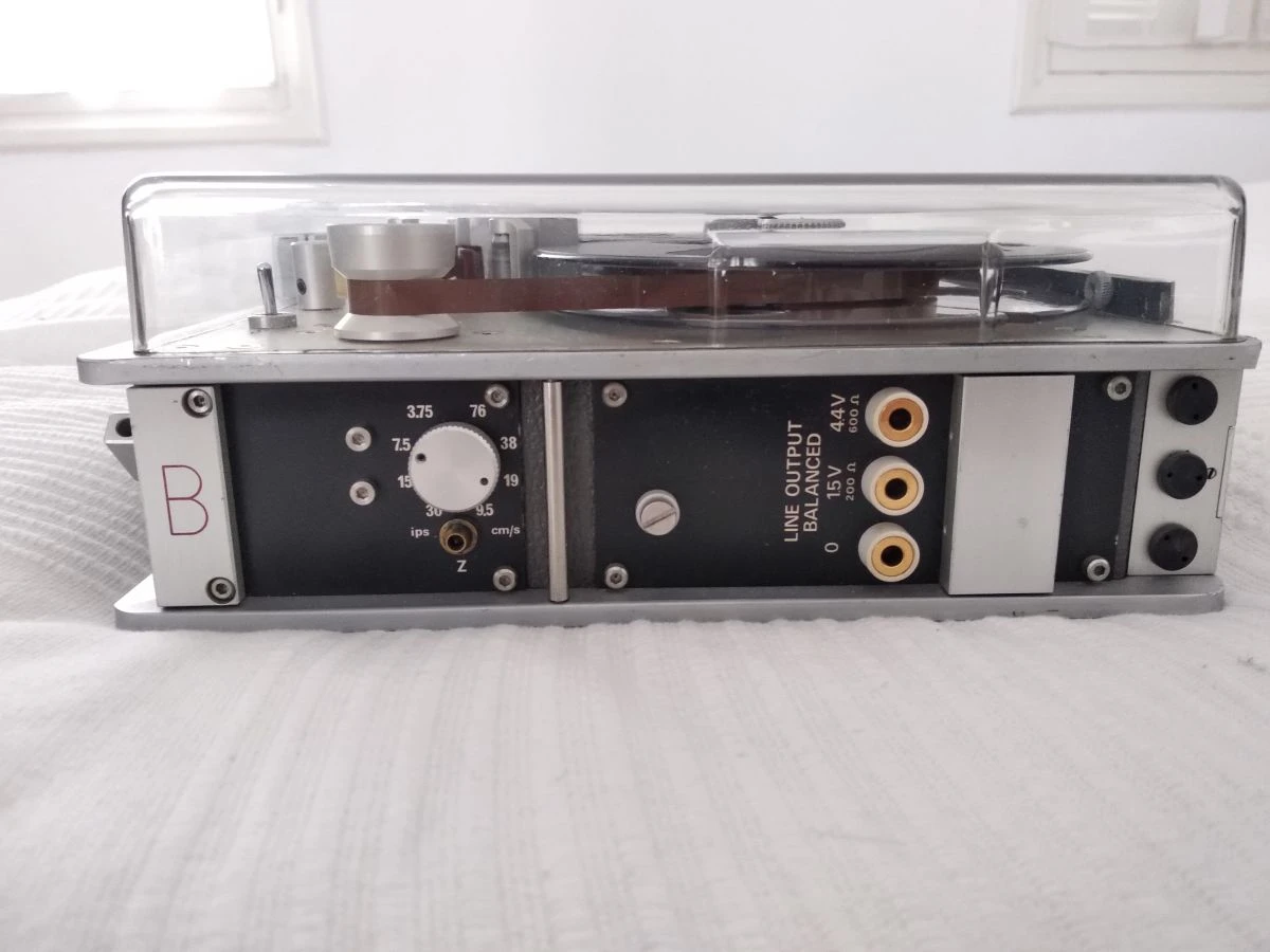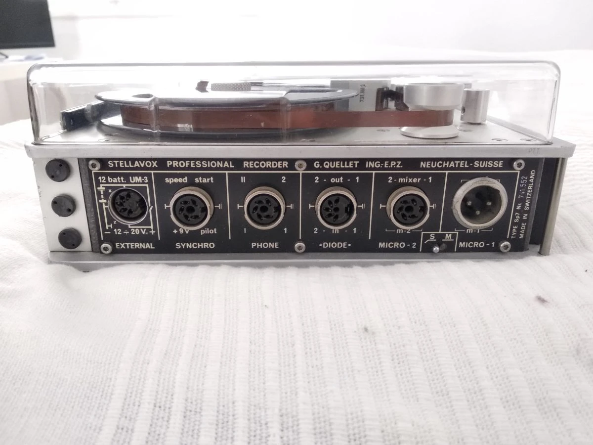 Από τα καλυτερα φορητα μπομπινοφωνα, μαγνητόφωνα, για πολλους καλυτερα και από τα NAGRA. Είναι ολο από αλουμινιο και η εξωτερικη του κατασταση είναι παρα πολύ καλη. Τεχνικα γραφει και παιζει κανονικα αλλα θα χρειαστεί σερβις και pinch roller μετα απο τοσα χρονια. Για παράδειγμα προς το τέλος του γυρισματος της ταινίας δυσκολευεται. NEEDS SERVICE. Ελβετικο, το εχω αγοράσει μεταχειρισμένο πριν από 20 περιπου χρονιά από εκεί. Δεν έχει υποστεί καμια παρέμβαση από εμενα κτλ. Είναι ένα μηχανημα 40+ χρονων και δεν δινω καμια εγγυηση για σωστη λειτουργια!. Είναι αυτό ακριβως που βλέπετε στις φωτογραφίες. Διαστασεις 27χ21χ8 cm. Μπομπινες 13cm. Πληροφοριες θα βρειτε και στο διαδικτυο. Μπορει να το δει οποιος ενδιαφέρεται πραγματικα στις Σερρες από κοντα μετα από συνεννοηση. Aνταλλαγη με ηχεια !. Ευχαριστω.