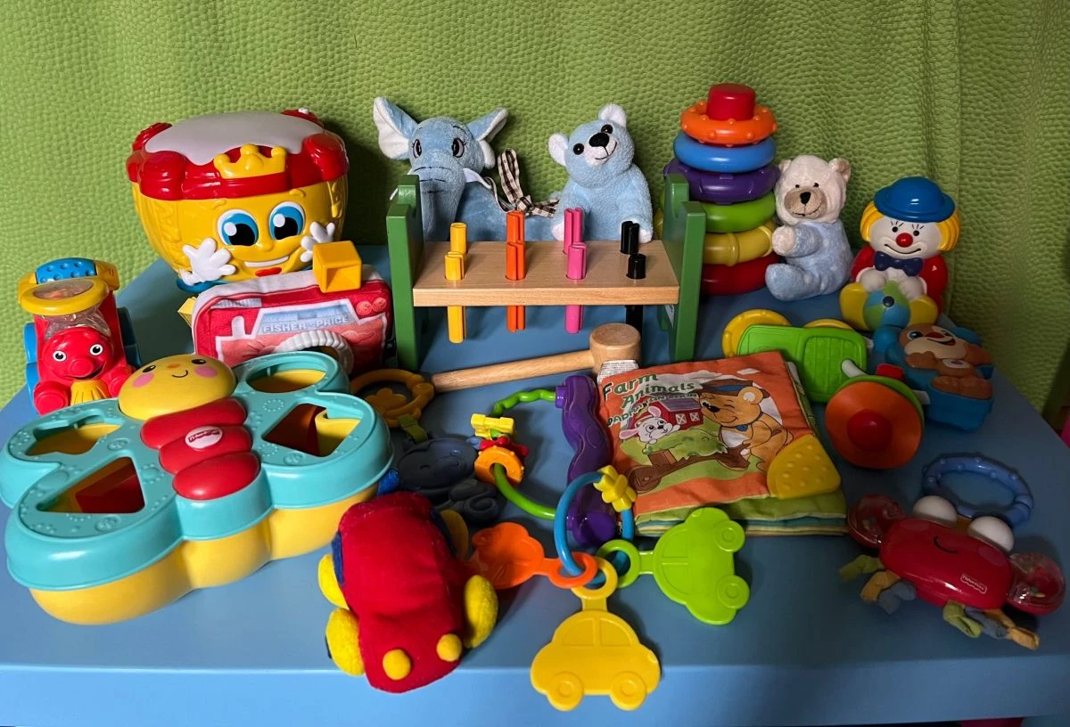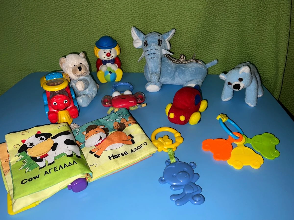 Vendora Βρεφικά παιχνίδια πακέτο Fisher Price Πεταλούδα με Σχήματα, Φωτογραφική Μηχανή με Καθρέφτη από Ύφασμα,Clementoni Baby Ρούλης Τυμπανούλης, PlayGro Sort And Stack Tower Πύργος με Κρίκους, IKEA και άλλα.