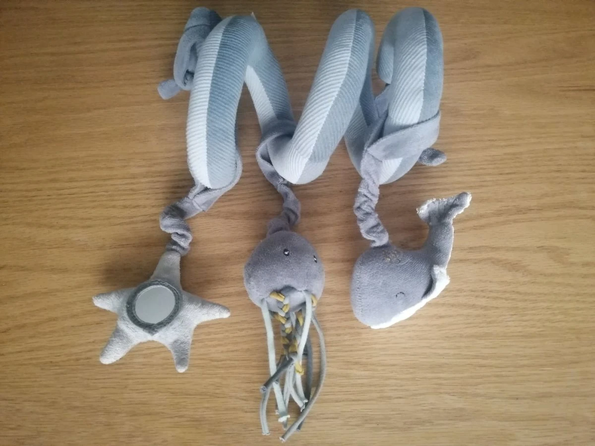 Συσκευή νανουρισματος γατούλα Kiki, κουδουνίστρα μαιμουδακι και ζέβρα με βεντούζα Fisher prize, σπιραλ παιχνίδι για παιδικό καροτσι η κούνια little Dutch σε μπλε-γκρι. Όλα σε άριστη κατάσταση!