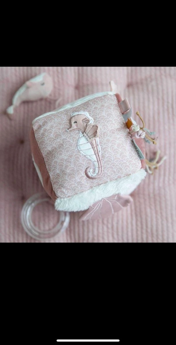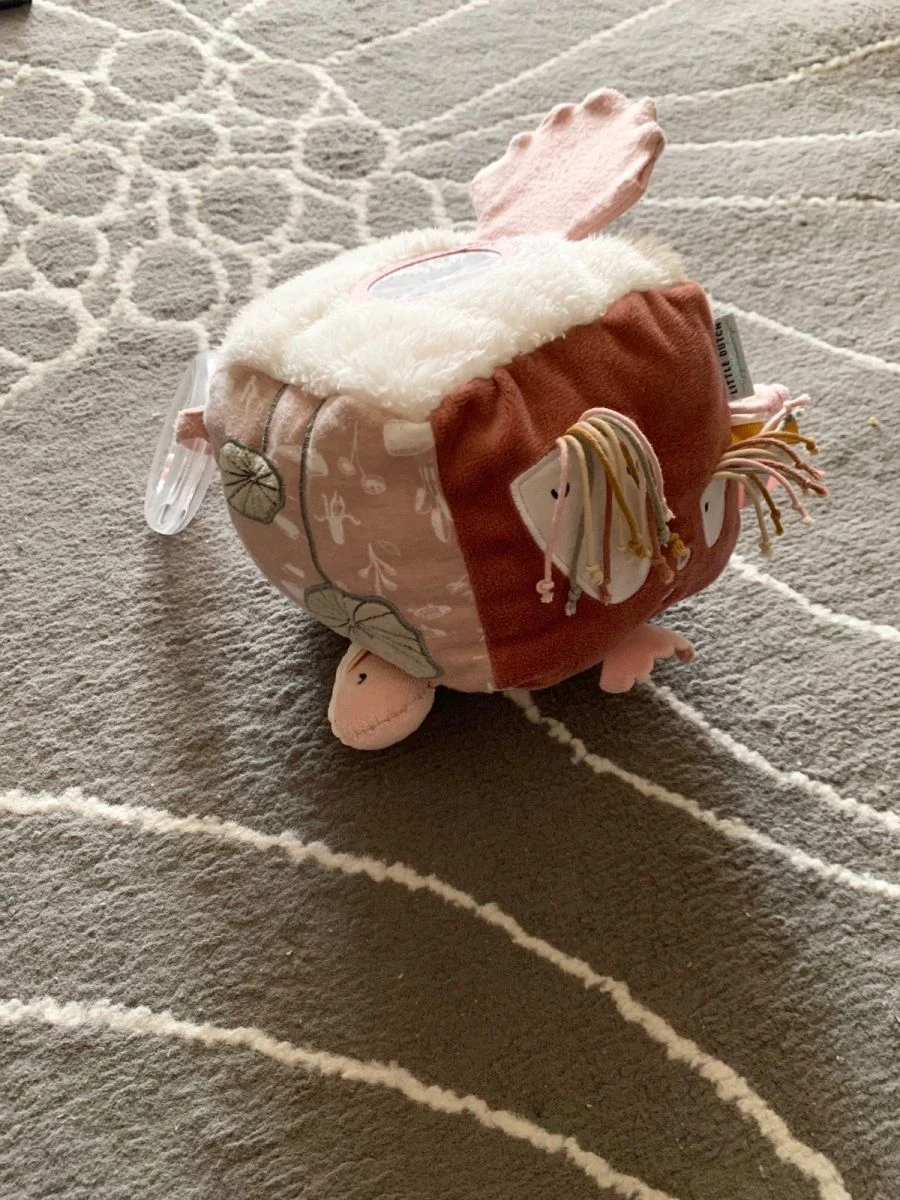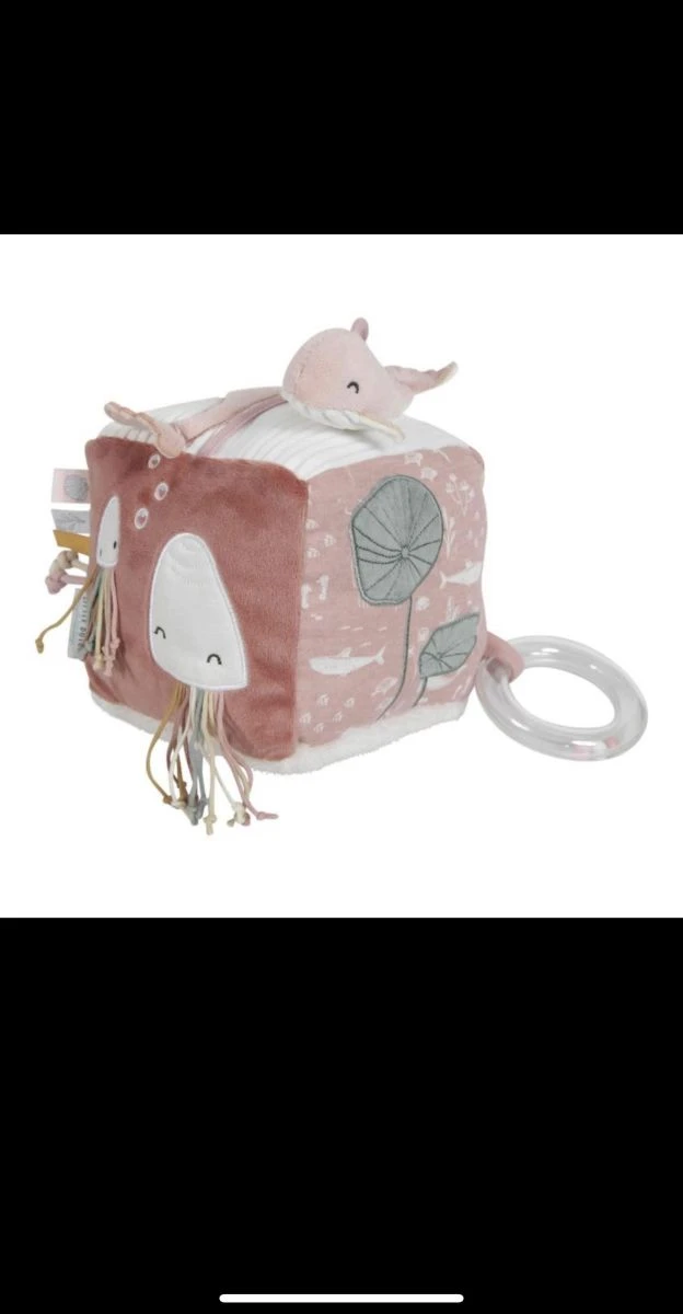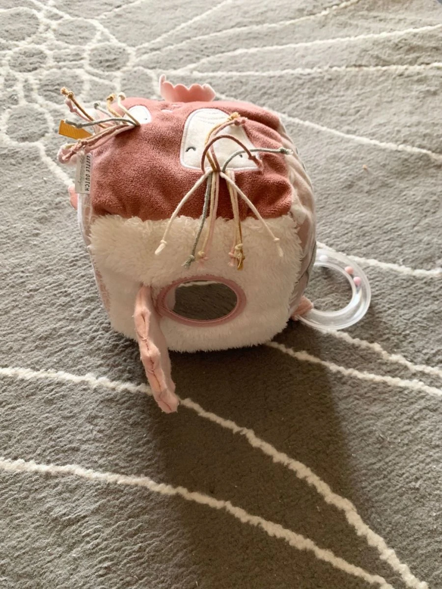 Απαλός, υφασμάτινος κύβος με δραστηριότητες της Little Dutch που κεντρίζει και διεγείρει τις αισθήσεις του μωρού, με καθρέφτη, μασητικό κρίκο, κουδουνίστρα που κάνει ήχο σε κάθε κίνηση και άλλες δραστηριότητες. Σε αριστη κατασταση.