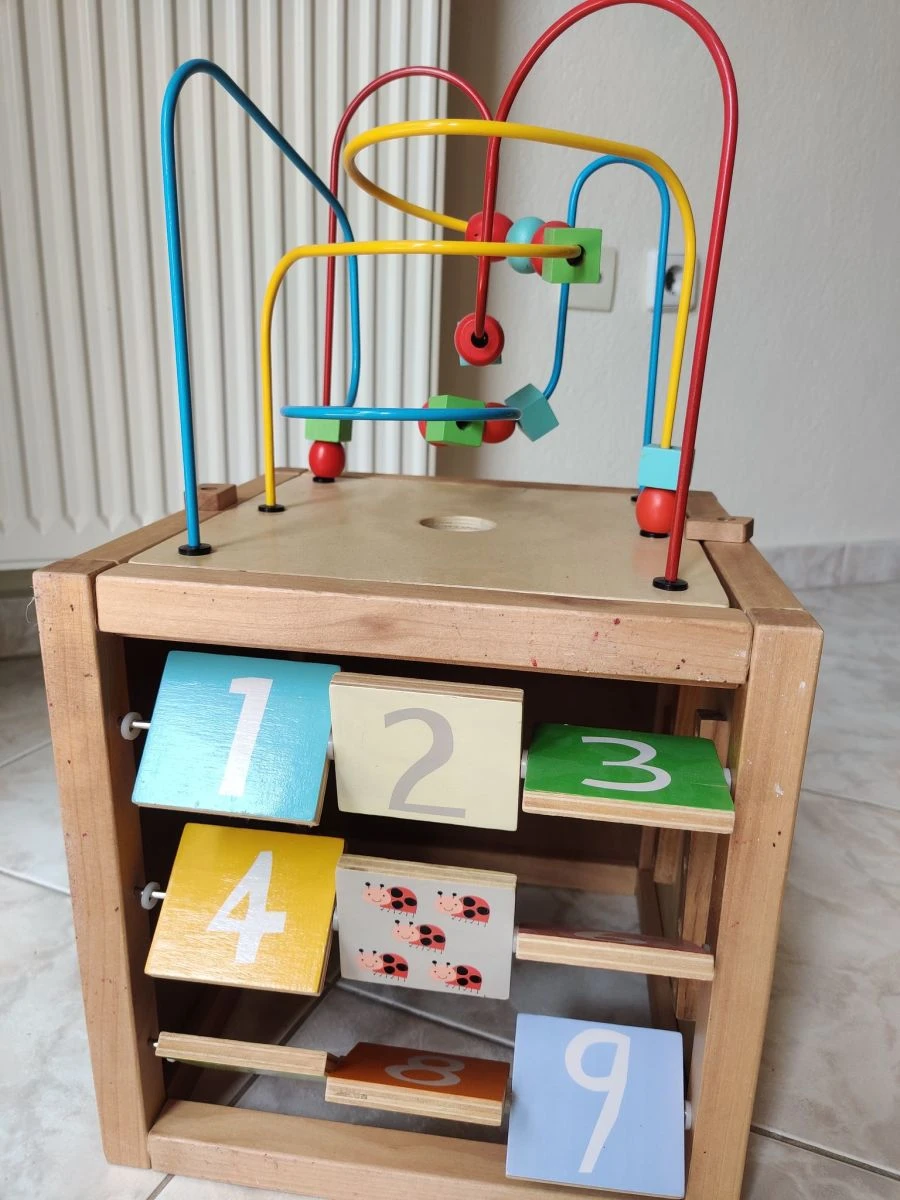 Πρόκειται για έναν ξύλινο κύβο με πολλές δραστηριότητες στις πλευρές του.